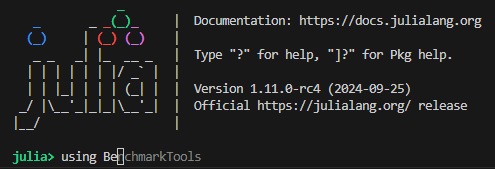 % hyperfine 'julia +1.11 --startup-file=no -e "1+1"'