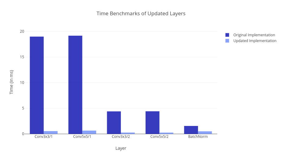 Next up was to perform benchmarks for the current implementations in Flux and solve the bottlenecks wherever possible. So we wrote the benchmarking scripts for Flux and Pytorch and performed heads on comparison between them. For the first time, it turned out that Pytorch is much faster than Flux. However, we were able to find the reason for this slow speed. Turned out it was because of the lack of a specialized kernel for broadcasted addition and its backward pass. So the immediate solution was to wrap some of the CUDNN Functions and integrate them with Flux. Doing this actually brings down the time taken by those layers a lot. Currently, we are at-par with Pytorch wrt the time for each of the individual layers.