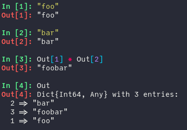 Drawing heavily on inspiration from the IPython shell (and other notebook-based systems like Mathematica), the Julia REPL can enable a "numbered prompt" that stores evaluated objects in the REPL for later use and keeps track of the number of expressions that have been evaluated.
